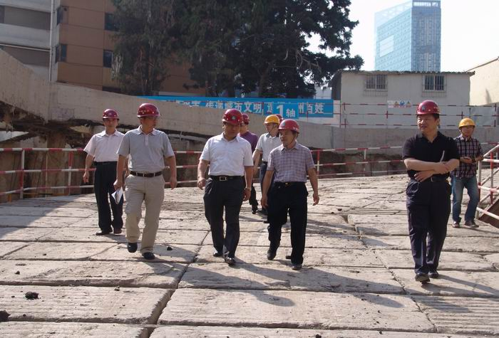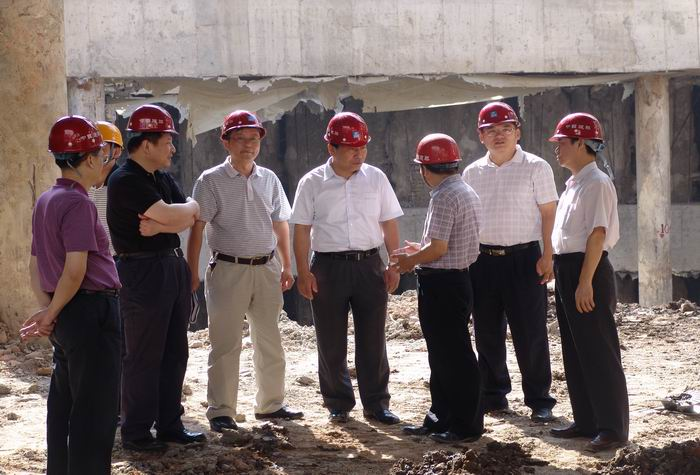 10月23日,集團張忠董事長(左四)、陳軍華總經理(左二)視察海西商務大廈施工現場