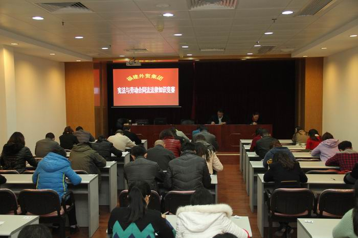 為弘揚憲法精神和社會主義法治精神,增強(qiáng)全員法治觀念, 12月19日,外貿(mào)集團(tuán)舉辦了“福建外貿(mào)集團(tuán)憲法與勞動合同法法律知識競賽”活動。活動采用閉卷考試的方式,旨在促法律知識的學(xué)習(xí)、普及,提高知法、懂法、守法的認(rèn)知和自覺。集團(tuán)權(quán)屬企業(yè)總法律顧問、法務(wù)人員及各職能部門共50多名員工參加了競賽,通過此次競賽在集團(tuán)范圍內(nèi)掀起了新一輪學(xué)習(xí)法律知識的新高潮,成為“六五”普法活動的又一個階段性成果。