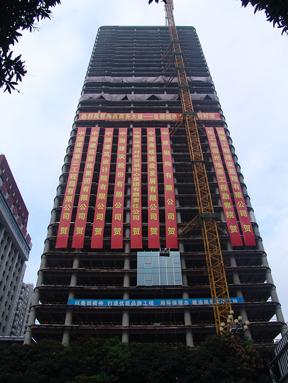 海西商務(wù)大廈建成后將成為國(guó)際化5A級(jí)智能型高端商務(wù)大廈。該項(xiàng)目由中國(guó)(福建)對(duì)外貿(mào)易中心集團(tuán)有限公司負(fù)責(zé)開發(fā),中國(guó)建筑股份有限公司負(fù)責(zé)承建,中建鋼構(gòu)有限公司負(fù)責(zé)鋼結(jié)構(gòu)制造和安裝。