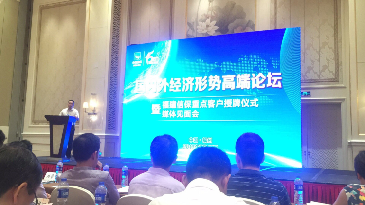 7月17日,中國出口信用保險公司福建分公司在福州舉辦“國內外經濟形勢高端論壇”暨福建信保重點客戶授牌儀式,外貿集團權屬漳州外貿公司獲頒“最具忠誠力重要合作伙伴”稱號。漳州外貿公司董事長祝海輝、總經理邱藝卿應邀參會,祝海輝作為三家企業代表之一在會上發言。