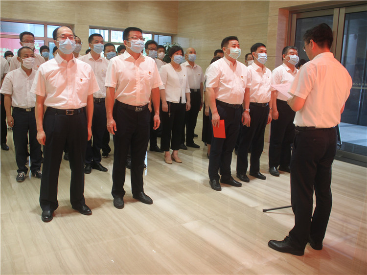 集團黨委副書記游向陽同志帶領大家重溫了入黨誓詞。集團黨委班子成員分別向各基層黨組織贈送了黨旗,頒發了“黨員示范崗”標牌,并向首批聘任的“黨員教育講師”頒發了聘書。
