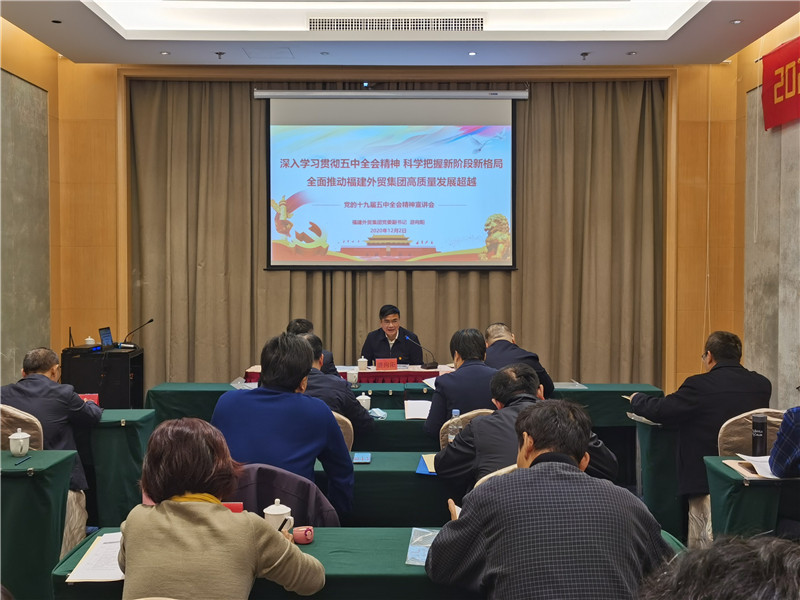 在培訓班上,集團黨委副書記游向陽宣講了黨的十九屆五中全會精神,做了題為《深入學習貫徹五中全會精神,科學把握新階段新格局,全面推動福建外貿集團高質量發展超越》的專題輔導報告。