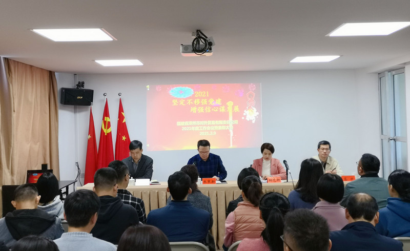 會議指出,2021年是中國共產黨建黨100周年,“十四五”規劃的開局之年,新的起點,新的征程。漳州外貿公司要抓住機遇,克服困難,科學謀劃當前重要的項目,高質量、高效率完成重點任務,以優異成績慶祝建黨100周年。