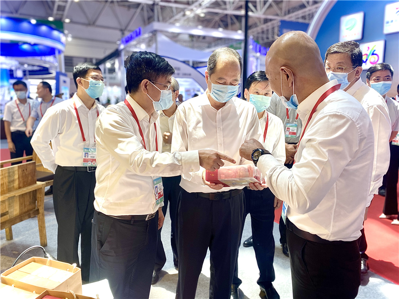 展會(huì)開幕當(dāng)日,省委常委、秘書長、常務(wù)副省長鄭新聰?shù)阮I(lǐng)導(dǎo)蒞臨集團(tuán)展館參觀指導(dǎo),現(xiàn)場聽取了外貿(mào)集團(tuán)黨委副書記、總經(jīng)理游向陽,省花卉盆景有限公司總經(jīng)理段軍東關(guān)于集團(tuán)鄉(xiāng)總農(nóng)品助農(nóng)產(chǎn)業(yè)平臺(tái)在打造農(nóng)村特色產(chǎn)業(yè)和品牌產(chǎn)品,鞏固拓展脫貧攻堅(jiān)與鄉(xiāng)村振興有效銜接的成果匯報(bào),并予以肯定。