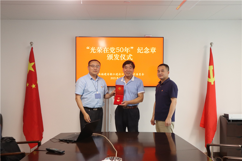 6月21日下午,外貿(mào)集團權(quán)屬榕江公司黨委隆重舉行“光榮在黨50年”紀念章頒發(fā)儀式。公司黨委書記、總經(jīng)理郭東亮及部分班子成員、黨員代表出席儀式。