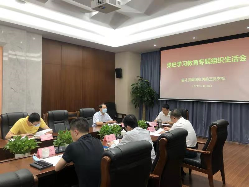 2021年7月30日上午,外貿集團機關第五黨支部召開了黨史學習教育專題組織生活會,省國資系統黨史學習教育第二巡回指導組組長黃建民、指導組成員王峰蒞臨指導。